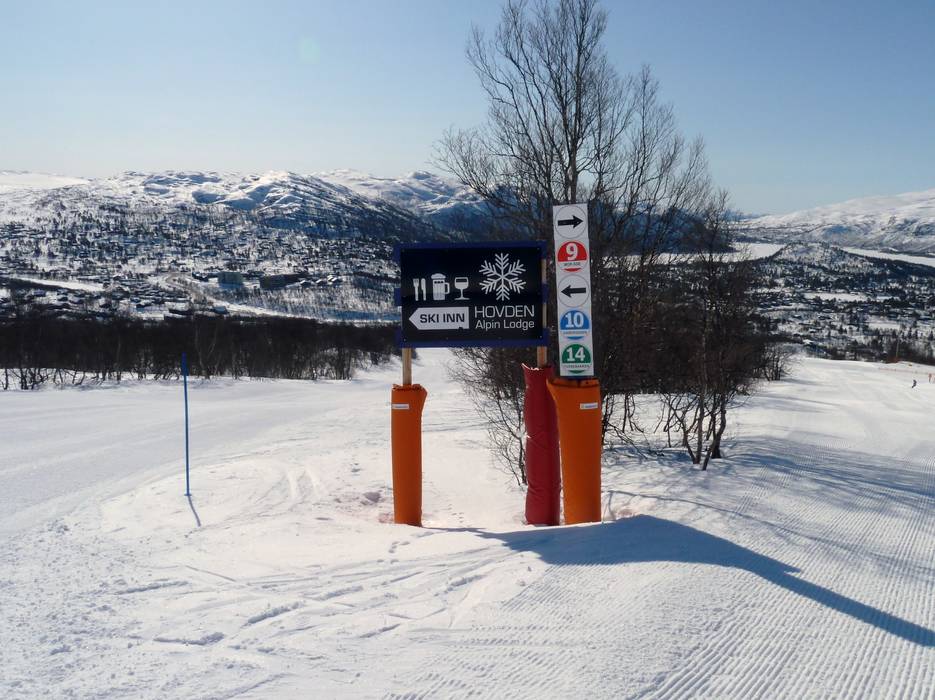 Indications de directions (plans, panneaux informatifs, signalisation) et sécurité sur le domaine skiable Hovden