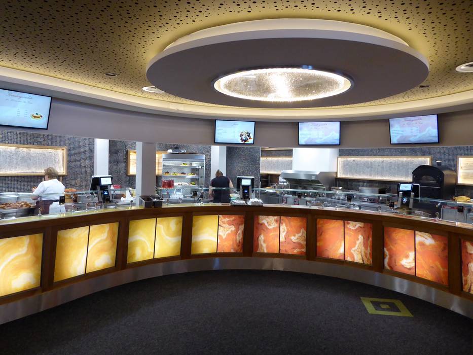 Le restaurant Salaas propose à l’étage supérieur un espace avec service à table où vous pourrez déguster des spécialités suisses. Parmi les plats proposés figurent notamment la fondue, la raclette et des steaks. Soupes, salades et plats de pâtes sont également au menu. De plus, un restaurant en libre-service avec une grande terrasse ensoleillée sur le toit ainsi que le Skyline Bar sont à votre disposition.