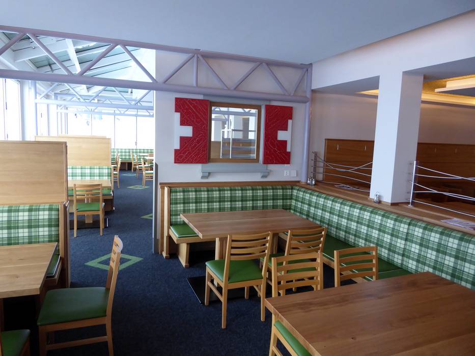 Le restaurant Sattel propose une excellente cuisine avec service à table et self-service. Une grande terrasse ensoleillée complète l’offre. Un point fort est le VIP Lounge avec bar, confortables fauteuils de relaxation et une vue unique sur la montagne.