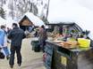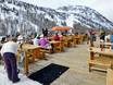 La majorité des restaurants d’altitude se trouve au Kinderland le long du village. Dans la plupart, le service est en libre-service. De nombreux établissements proposent également uniquement des petits snacks. Dans certains chalets, le service à table est assuré. En général, le niveau des prix est relativement élevé.