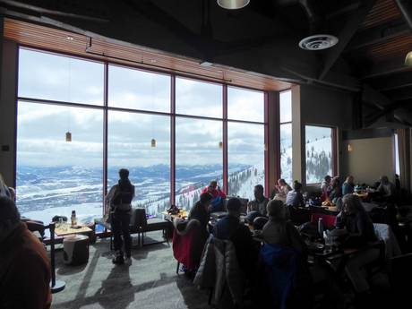 La plupart des possibilités de restauration se trouvent à Teton Village, autour des stations de la vallée. En haut de la montagne, vous pouvez faire une pause à la Rendezvous Lodge ou au Casper Restaurant. Au sommet, vous attend la Corbet's Cabin. La cuisine proposée est principalement américaine. Il existe un bon équilibre entre service à table et self-service.