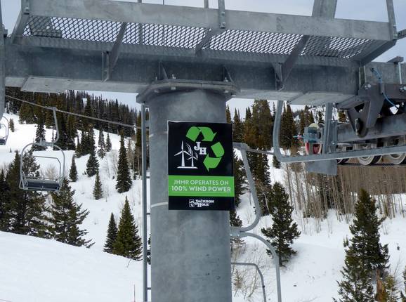 La station de Jackson Hole Mountain Resort accorde une grande importance à la protection de l'environnement et à la durabilité. Depuis 2019, le domaine skiable de Jackson Hole couvre 100 % de ses besoins en électricité avec de l'énergie verte. Cela s'applique également à tous les remontées mécaniques, installations et opérations dans la vallée. Tous les projets futurs sont soumis à un processus rigoureux d'examen de la conception afin de garantir que les meilleures pratiques et le choix de matériaux durables sont intégrés à la construction et que des bâtiments certifiés écologiques voient le jour. Les déchets sont triés, l'accent est mis sur l'achat de produits régionaux, la station s'engage pour la protection et la restauration des habitats naturels des animaux et encourage les transports en commun par bus.