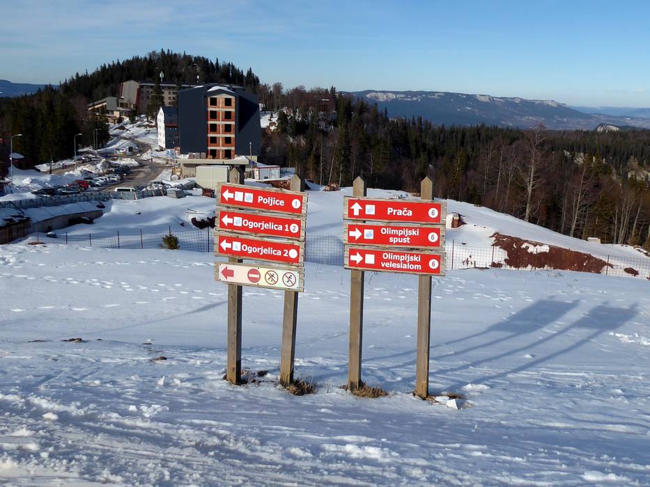 Indications de directions (plans, panneaux informatifs, signalisation) et sécurité sur le domaine skiable Jahorina