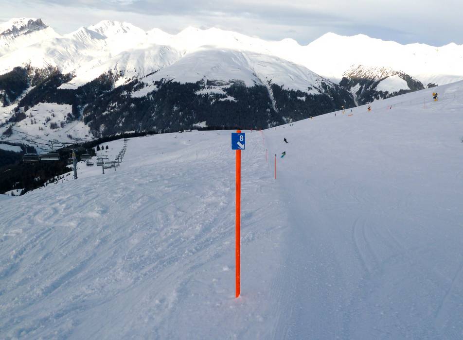 Indications de directions (plans, panneaux informatifs, signalisation) et sécurité sur le domaine skiable Jakobshorn (Davos Klosters)