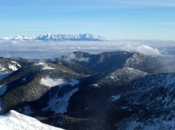 Vue sur le sommet du Chopok Sommet du mont Chopok au-dessus des nuages