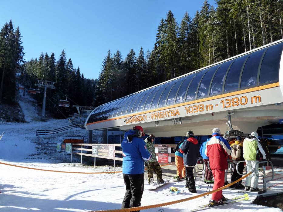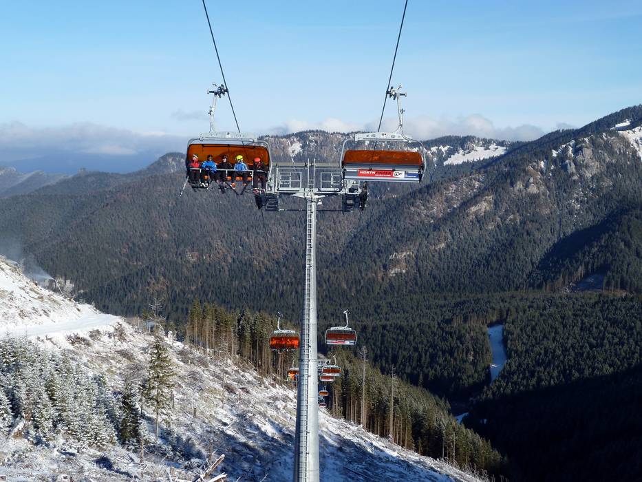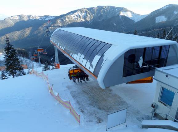 Le télésiège 6 places Zahrádky-Priehyba est équipé de bulles de protection orange contre les intempéries.