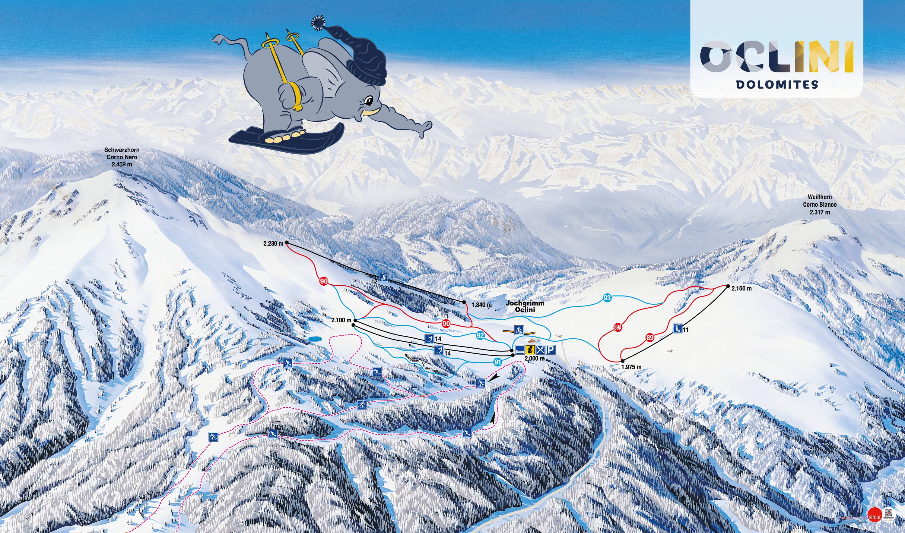 Jochgrimm (Passo Oclini) (0 km), Passo Lavazè (4 km), Varena (11 km) Communes près du domaine skiable