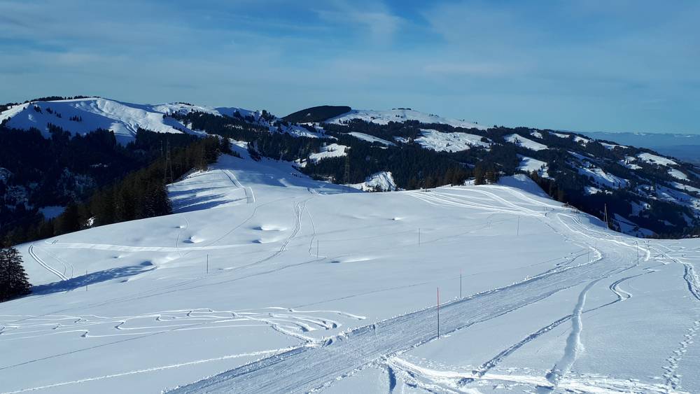Depuis la station supérieure, il est désormais possible de profiter de la vue magnifique à pied ou en raquettes. Le circuit dure environ 45 minutes au départ de la station supérieure et est aménagé en boucle. Ensuite, vous pourrez déguster une délicieuse fondue ou d'autres repas au Berghaus Riggisalp.2018/2019