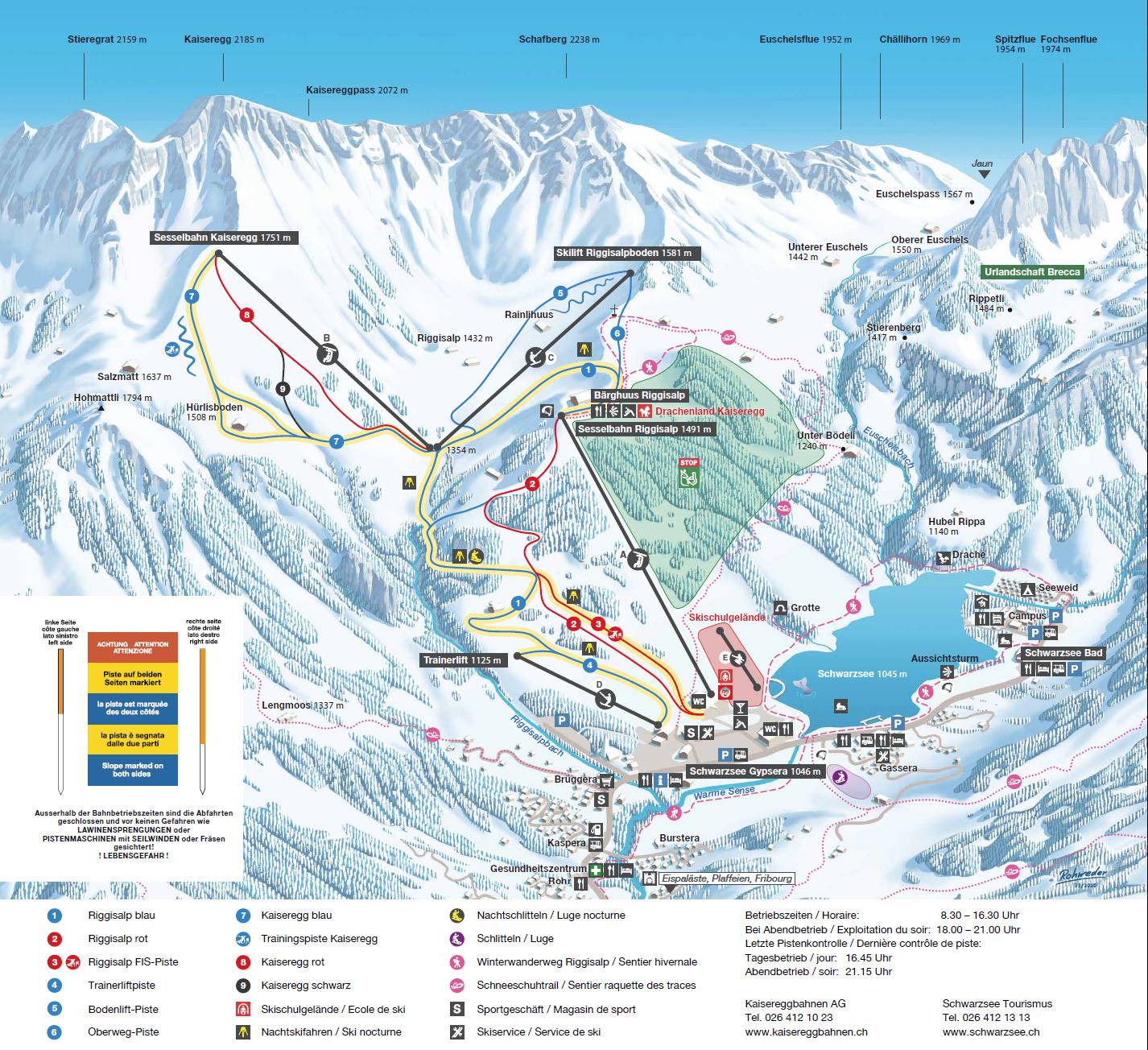 Plan des pistes Kaiseregg/Riggisalp – Schwarzsee Saison 2024/2025