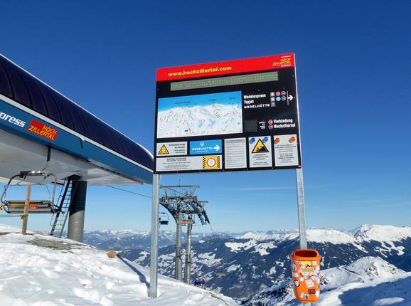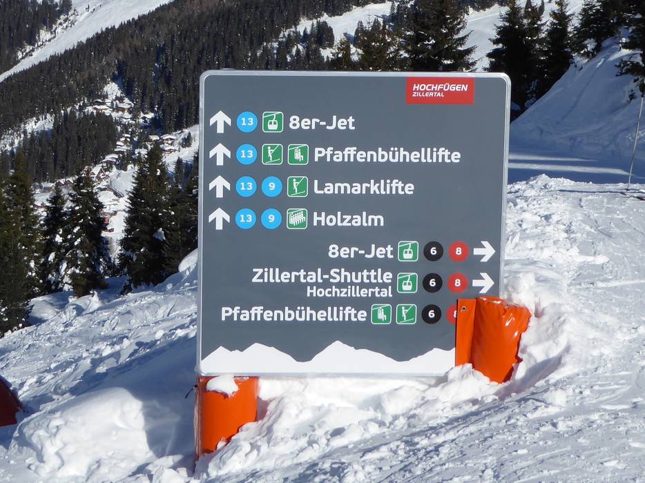 Indications de directions (plans, panneaux informatifs, signalisation) et sécurité sur le domaine skiable Kaltenbach – Hochzillertal/Hochfügen (SKi-optimal) Plan des pistes et cartes des alentours