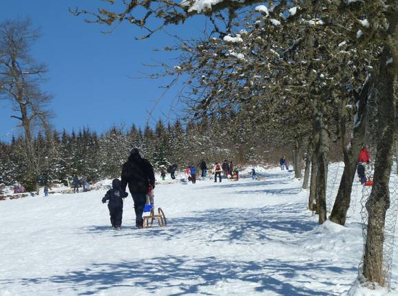 Sur le versant opposé, il y a en outre une piste de luge particulièrement belle, sécurisée côté route par une barrière de protection au cas où quelqu’un irait trop vite.