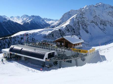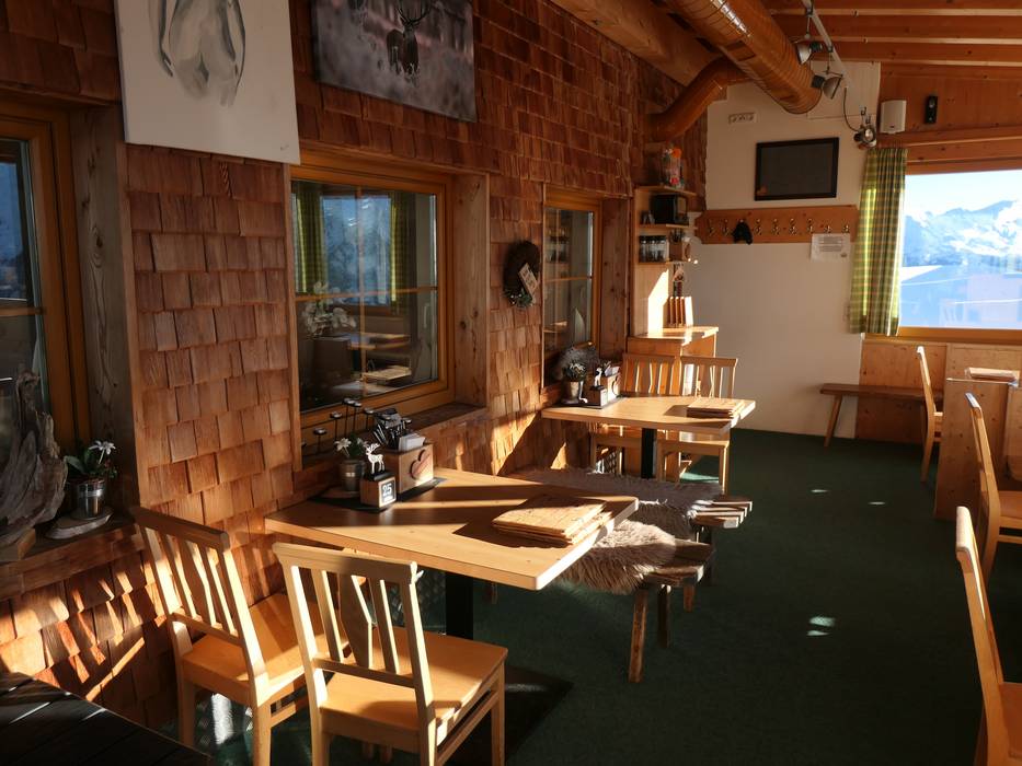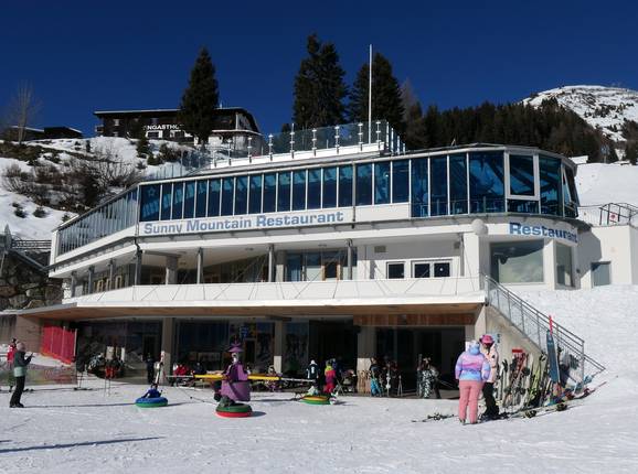 Le restaurant rustique propose des spécialités traditionnelles du Paznaun, des burgers spéciaux et des petits finger foods avec service à table.