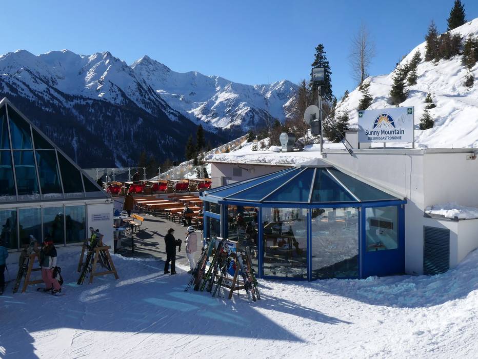 Le grand restaurant self-service propose une cuisine tyrolienne et une grande terrasse panoramique.