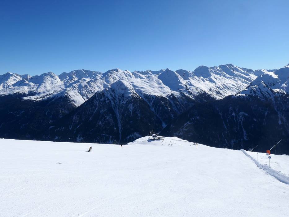 Depuis la station supérieure du téléphérique Alblittkopf, descendez par la piste panoramique Lattenabfahrt jusqu'à la station inférieure à Kappl.
