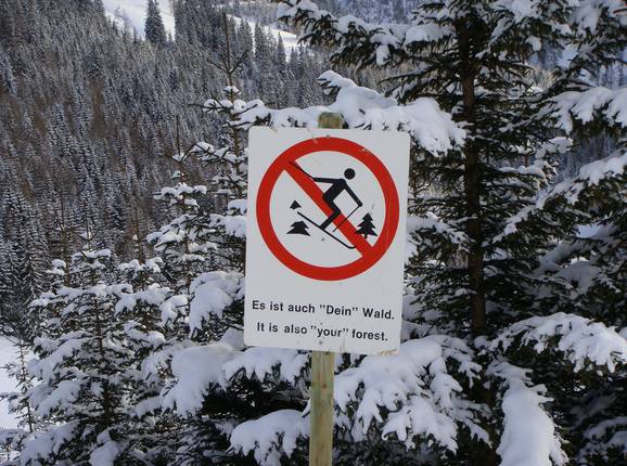 Les panneaux d’avertissement sensibilisent à l’importance de ne pas traverser la forêt afin de la préserver (« C’est aussi ta forêt »). De plus, le sentier de randonnée hivernale offre une alternative « douce » à la pratique du ski.