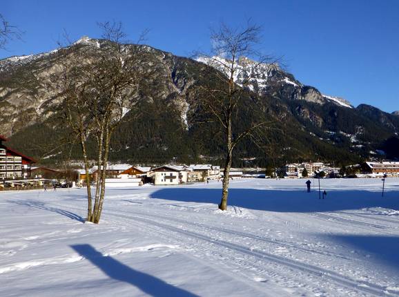 Parfaitement adaptée aux débutants, la piste de ski de fond du village traverse les prairies du centre de Pertisau.