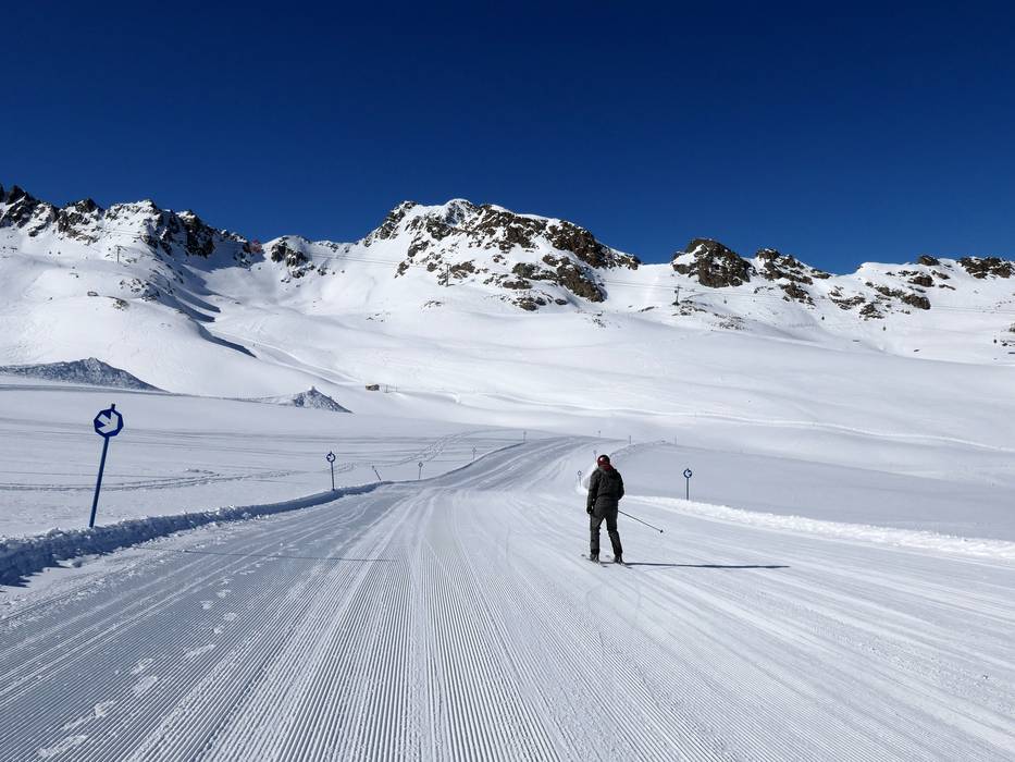 Le glacier du Kaunertal est très bien adapté aux débutants. À côté du parking du glacier, à 2 750 m d’altitude, se trouve une zone d’entraînement avec un tapis roulant. À l’exception de la Weißseejochbahn, tous les téléphériques et remontées mécaniques desservent des pistes bleues. Il est même possible de descendre du point le plus élevé du domaine skiable, au Falginjoch, jusqu’à la Ochsenalmbahn 1 en empruntant des pistes larges et faciles.