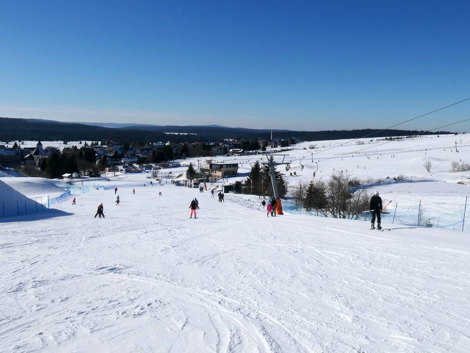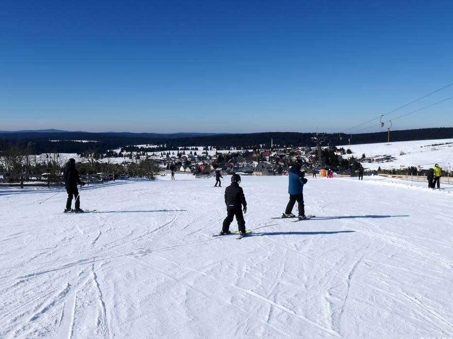 Dans la localité de Boží Dar, plusieurs téléskis desservent des pistes particulièrement larges et faciles avec une pente régulière – idéal pour les débutants.