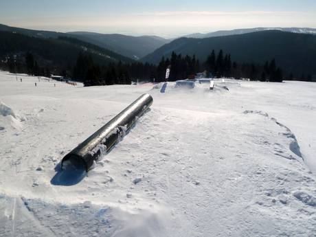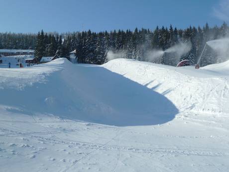 Le snowpark est l’un des plus anciens de la région et il propose de nombreux obstacles.