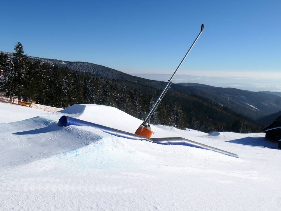 Le snowpark de Neklid est l’un des plus anciens de la région et il propose de nombreux obstacles et kickers.