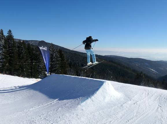 Klínovec propose deux snowparks offrant des possibilités attrayantes pour les freestylers et les snowboardeurs.