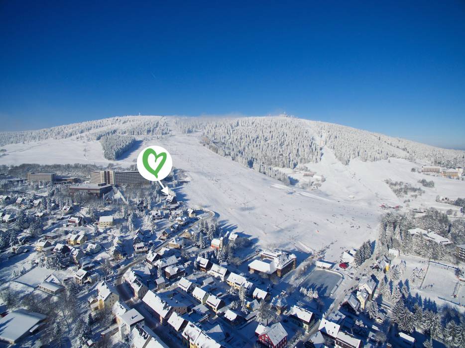 Grâce à sa position surélevée à 950 mètres d’altitude, la plupart des chambres de la maison offrent une vue panoramique pittoresque sur la ville, le Fichtelberg, la piste de ski ainsi que sur la République tchèque toute proche.