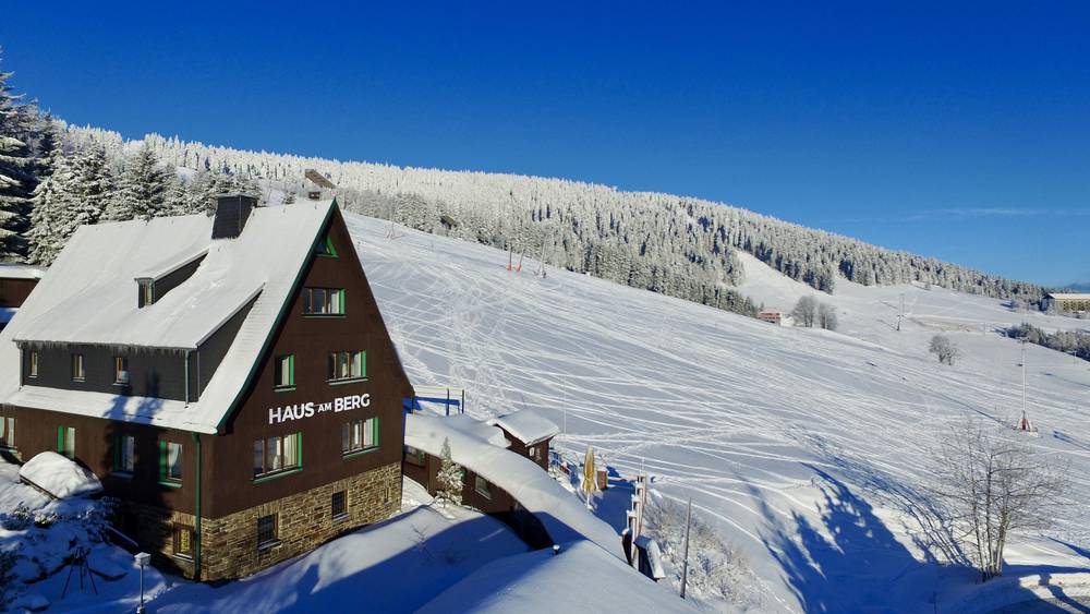 La pension Haus am Berg vous accueille avec des chambres modernes et récemment rénovées, situées directement au pied des pistes de ski de la station thermale d’Oberwiesenthal. Grâce à l’accès privé de la maison, vous accédez directement à la piste. Votre équipement peut être rangé confortablement dans les locaux attenants.
