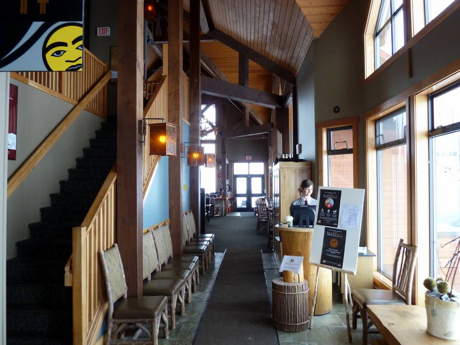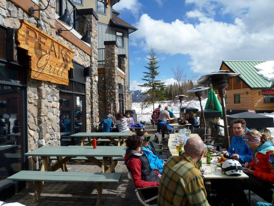 Le Peaks Grill propose une cuisine canadienne typique et de la bière fraîche. Par beau temps, la terrasse offre une vue sur le domaine skiable de Kicking Horse.