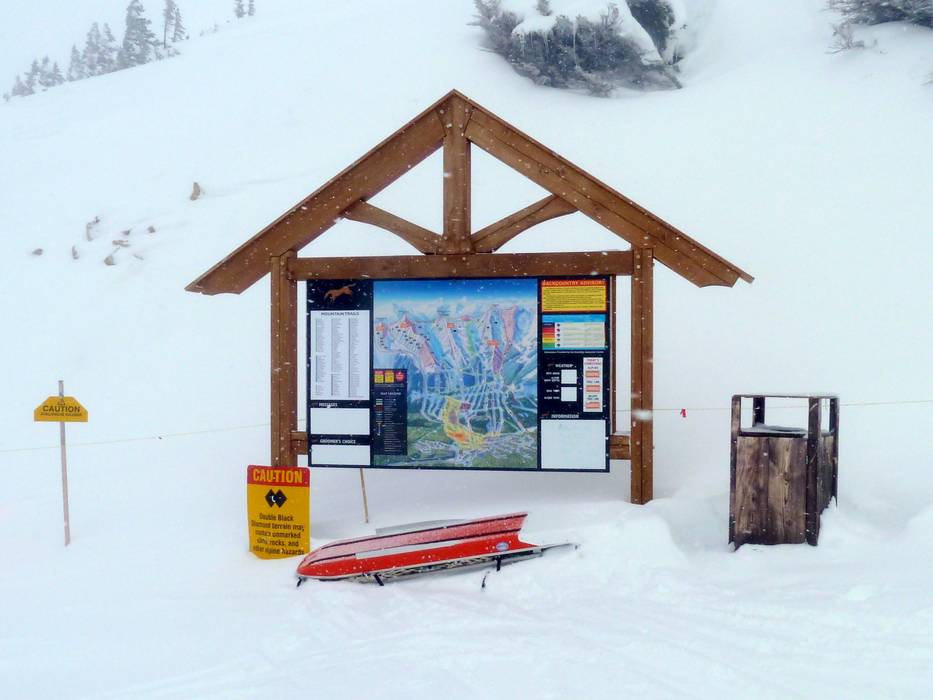 Indications de directions (plans, panneaux informatifs, signalisation) et sécurité sur le domaine skiable Kicking Horse – Golden