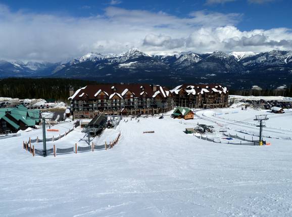 Directement à la station de départ de la télécabine se trouve le Kicking Horse Mountain Resort avec des hébergements, des restaurants et des boutiques. Ici, à seulement 10 mètres de la télécabine, se trouve notamment la Glacier Mountaineer Lodge, un hébergement luxueux avec des cheminées ouvertes et des kitchenettes dans les chambres. Un peu plus haut, directement sur les pistes, se trouvent la Palliser Lodge, Whispering Pines et The Aspens. D'autres hébergements se trouvent à seulement quelques pas de la station de départ de la télécabine. Ces dernières années, de nombreux hébergements de qualité ont été construits ici.