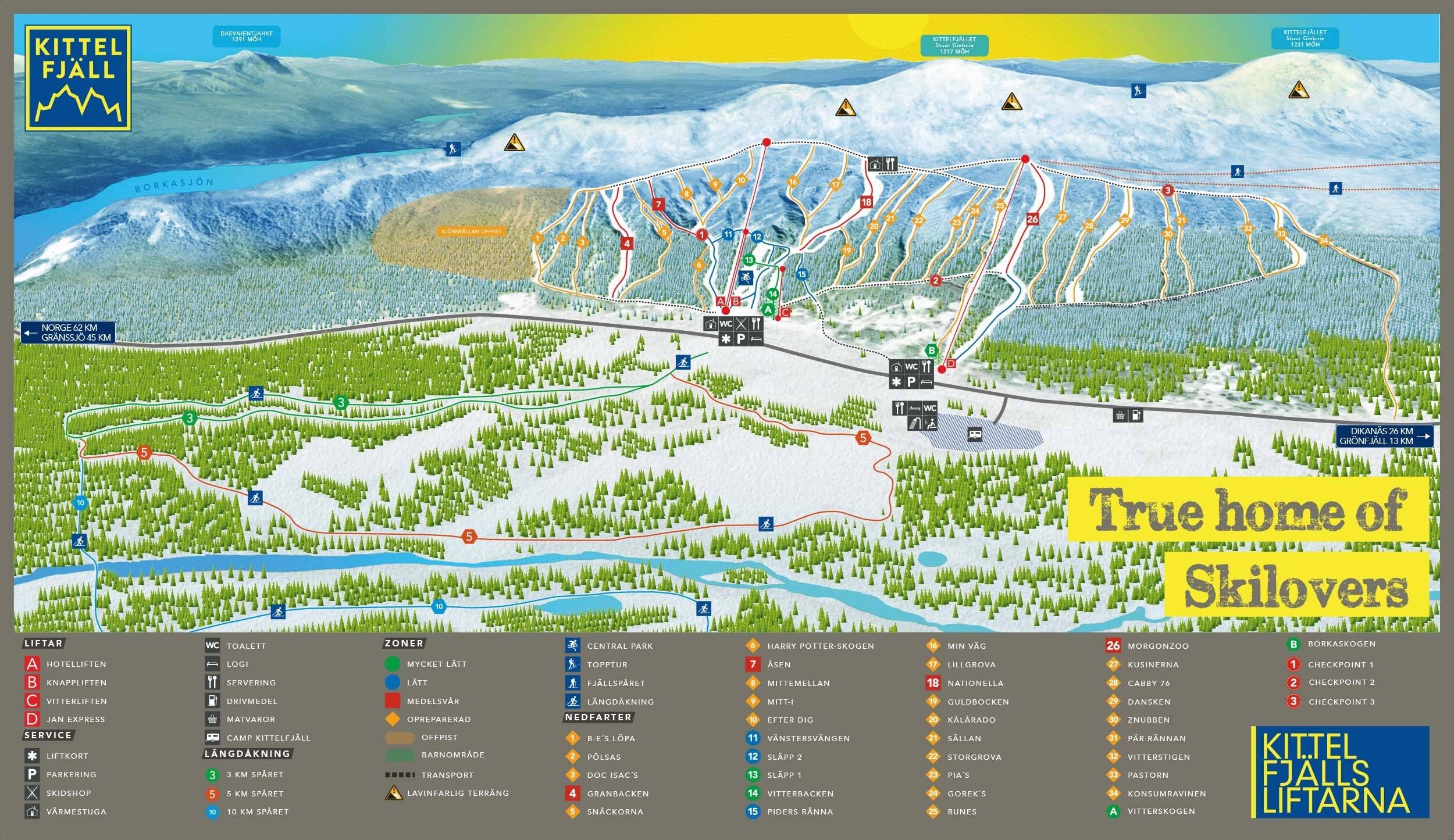 Plan des pistes Kittelfjäll Saison 2025/2026