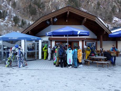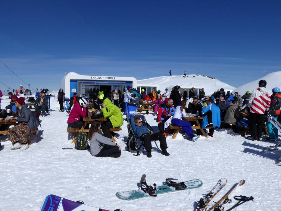 Ici, tout le monde passe, que ce soit pour rejoindre le bus ou le parking depuis la station de la vallée. L'après-ski est à prendre au pied de la lettre – plus besoin de skier après !