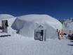 Sur la terrasse ensoleillée de l’ICE CAMP, vous pouvez vous détendre au son d’une musique chill. L’igloo abrite également un bar et de la musique. 60 tonnes de glace et 2 500 mètres cubes ont été utilisés pour la construction de l’ICE CAMP.