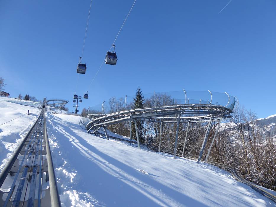 L’Alpin Coaster Maisiflitzer, également appelé montagne russe alpine, promet aux passagers un voyage palpitant vers la vallée. Les luges atteignent, pour les plus courageux, une vitesse allant jusqu’à 40 km/h. Grâce aux sauts intégrés et aux sections ondulées – sur la piste de Kaprun, il y a même 5 spirales – le frisson est considérablement augmenté. Les boucles et les ponts peuvent toutefois être franchis de manière plus tranquille : la vitesse est en effet déterminée par le conducteur lui-même. Le départ et l’arrivée de la piste se trouvent directement sur le parking du MK Maiskogelbahn.