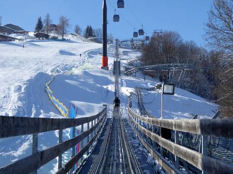 Au Langwiedboden, à 1976 m d'altitude, la mascotte Bobo attend les enfants dans le jardin d'enfants de l'école de ski Oberschneider. Lorsque le pingouin ne fait pas des siennes, les enfants apprennent à skier sur le carrousel de ski et le téléski à corde.