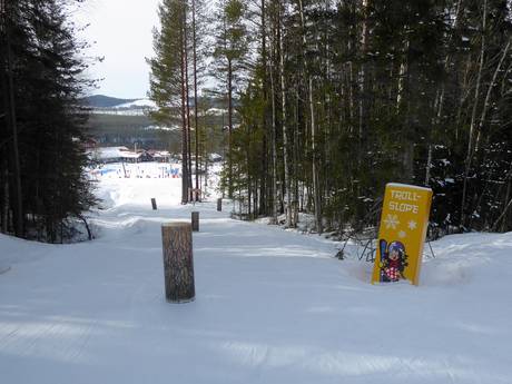 La grande zone pour enfants se trouve à Tranantorget et comprend un tapis roulant ainsi que plusieurs téléskis à assiettes. Ici, les plus petits peuvent s’initier aux sports d’hiver sur des pistes très faciles. Des personnages amusants et différents parcours de slalom complètent l’offre.