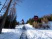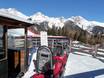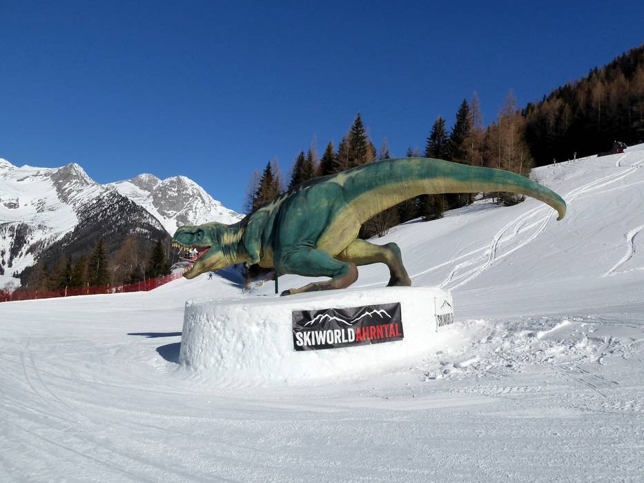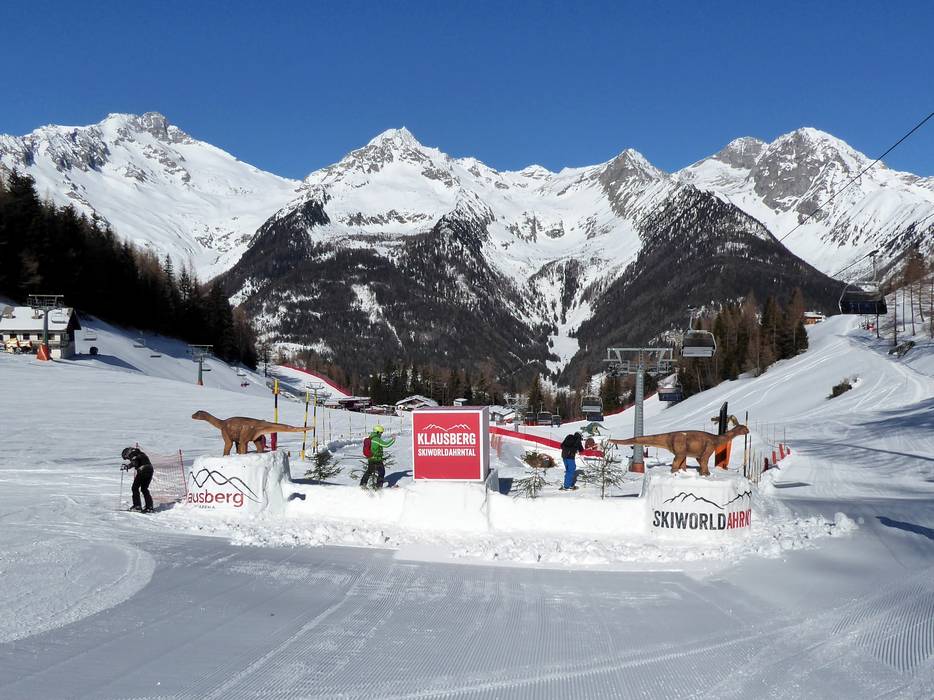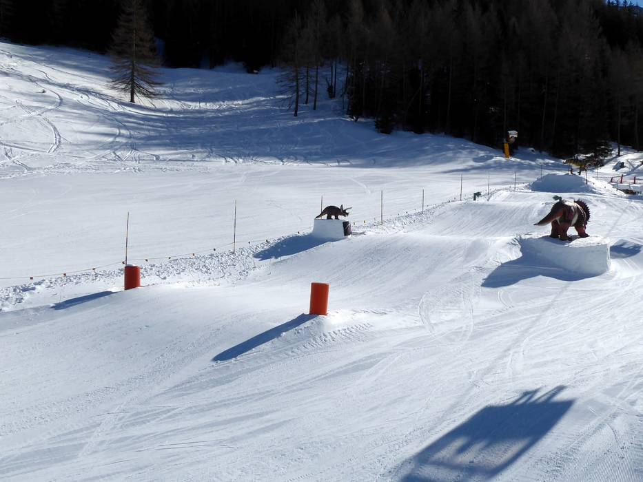 Sur la Dino Fun-Line au Klausberg, le snowpark freestyle pour enfants, des virages relevés, un tunnel, de petites boxes et de nombreux autres obstacles attendent d’être franchis. Ici, on est accompagné par des géants préhistoriques, comme le Tyrannosaurus Rex, le Stegosaurus et d’autres dinosaures lors de la descente à travers le Dinoland. On y profite d’un plaisir de glisse avec une touche d’originalité.