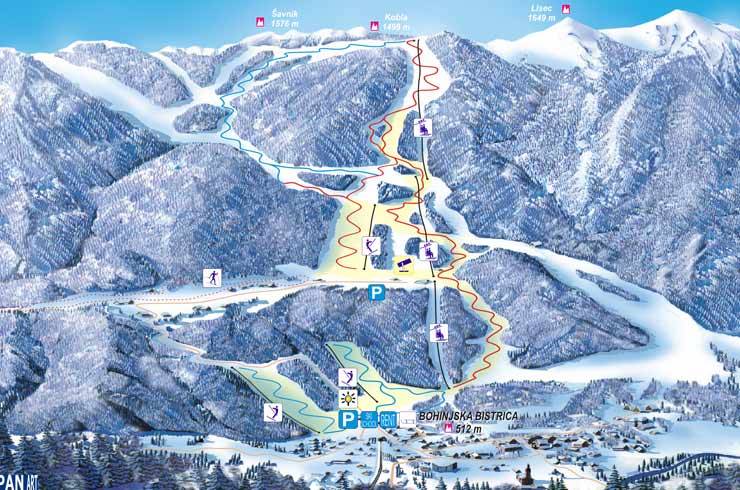 Plan des pistes Kozji Hrbet (Kobla – Bohinj) Saison 2024/2025