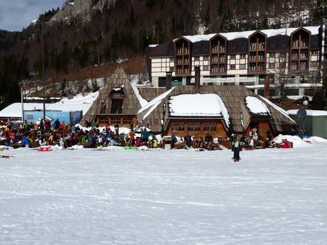 Le restaurant Troglava propose un très bel établissement avec service à table. Une grande terrasse ensoleillée complète l’offre. On y sert des petits-déjeuners, des soupes, des pizzas, des plats grillés, des steaks, des burgers et des salades de très haute qualité. À partir de l’après-midi, vous pouvez profiter de l’après-ski.