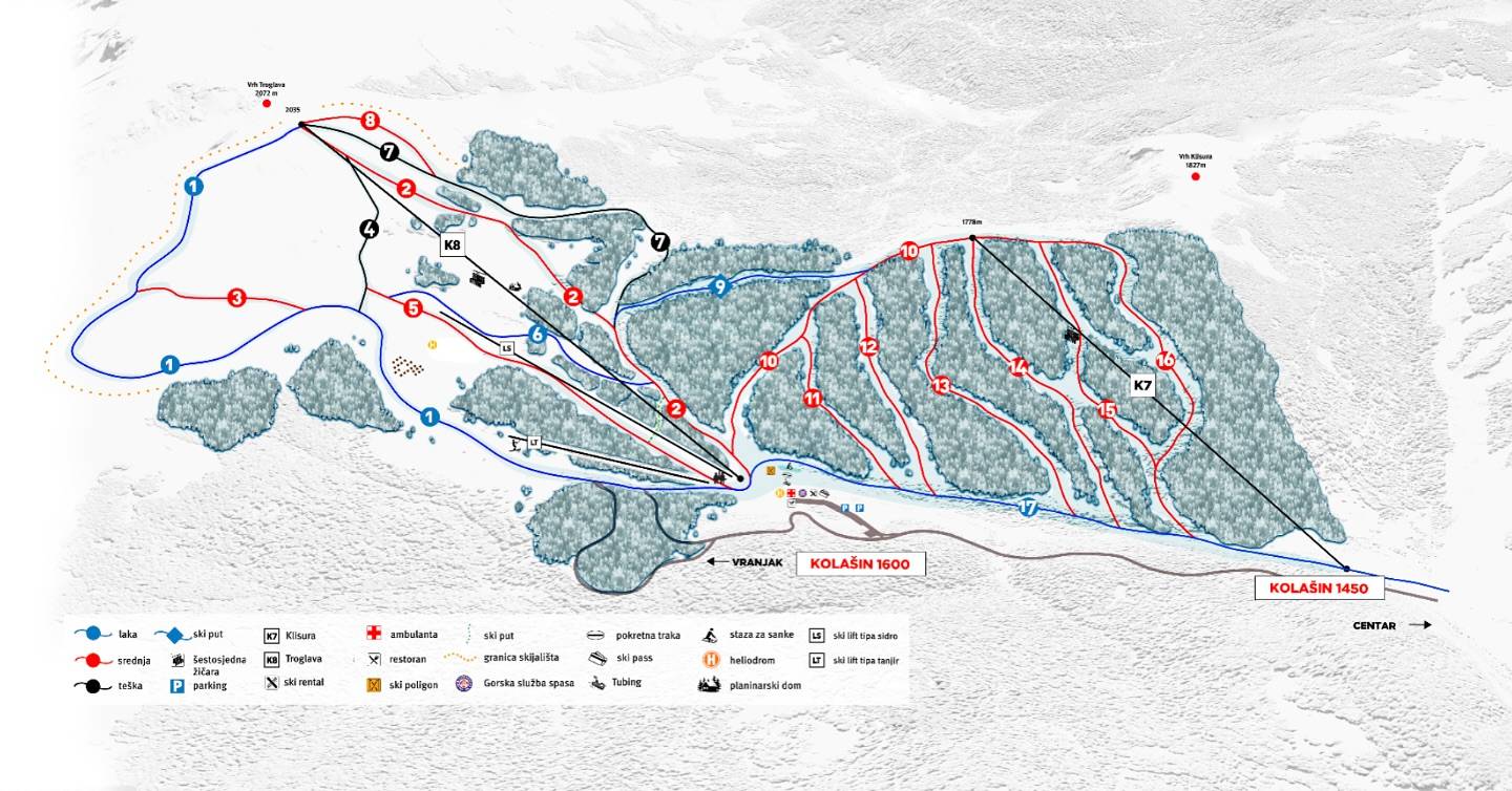 Plan des pistes Kolašin 1450/Kolašin 1600 Saison 2024/2025