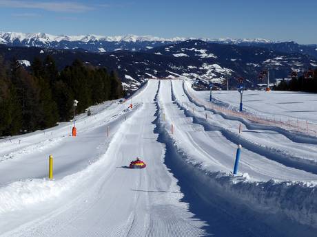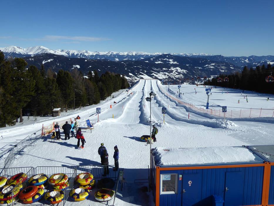 Le parc de tubing se trouve directement à la station supérieure de la télécabine Kreischberg 10er. Sur une bouée, on dévale les pistes en descendant la pente. Le téléski de tubing permet de remonter facilement au point de départ.