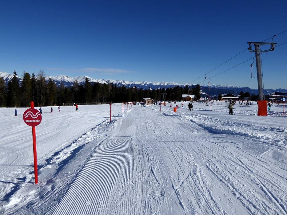 À la station supérieure de la télécabine Kreischberg 10er, il y a un espace idéal pour les débutants : tapis magique, téléski pour enfants, piste à petites vagues et téléski Kreischi.