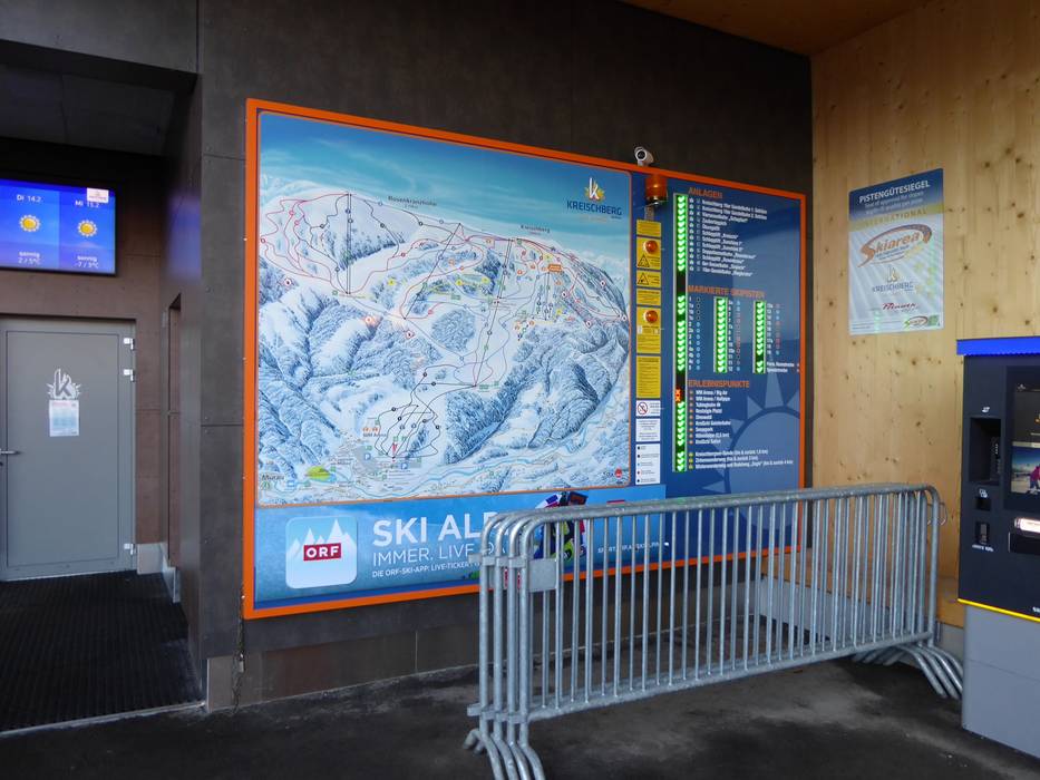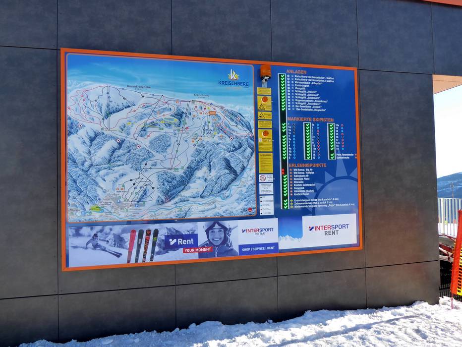 Indications de directions (plans, panneaux informatifs, signalisation) et sécurité sur le domaine skiable Kreischberg