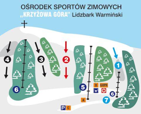 Plan des pistes Lidzbark Warmiński/Krzyżowa Góra Saison ---- !!! closed/stillgelegt