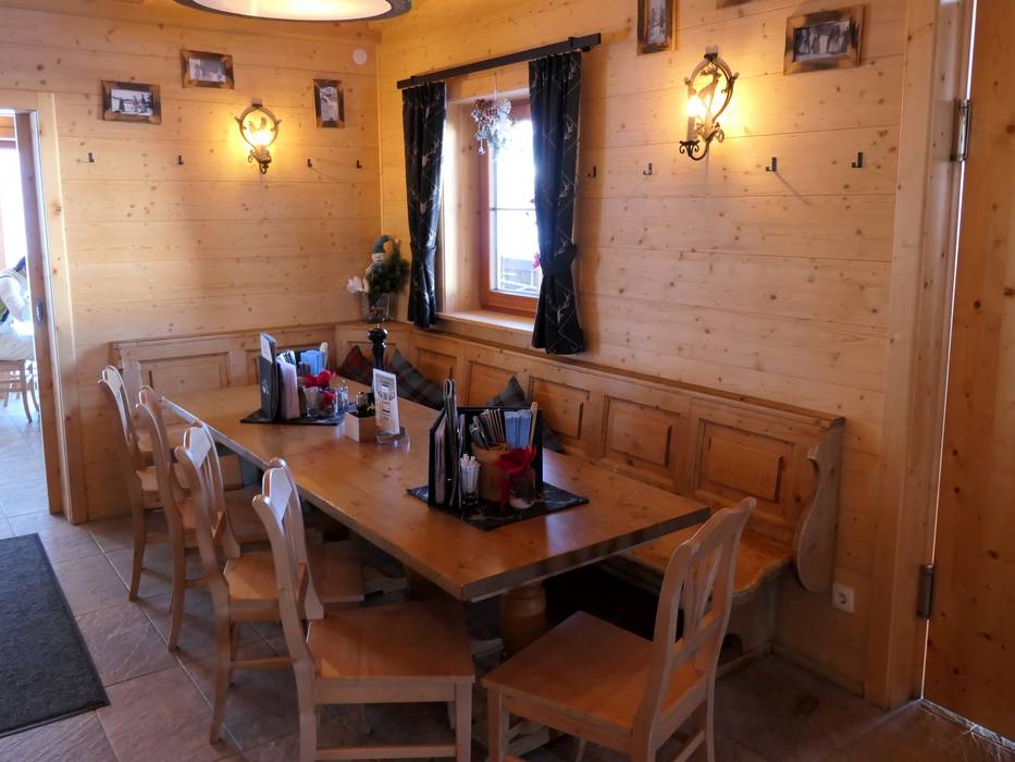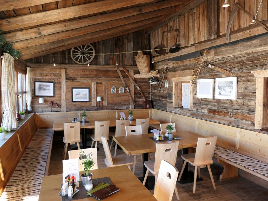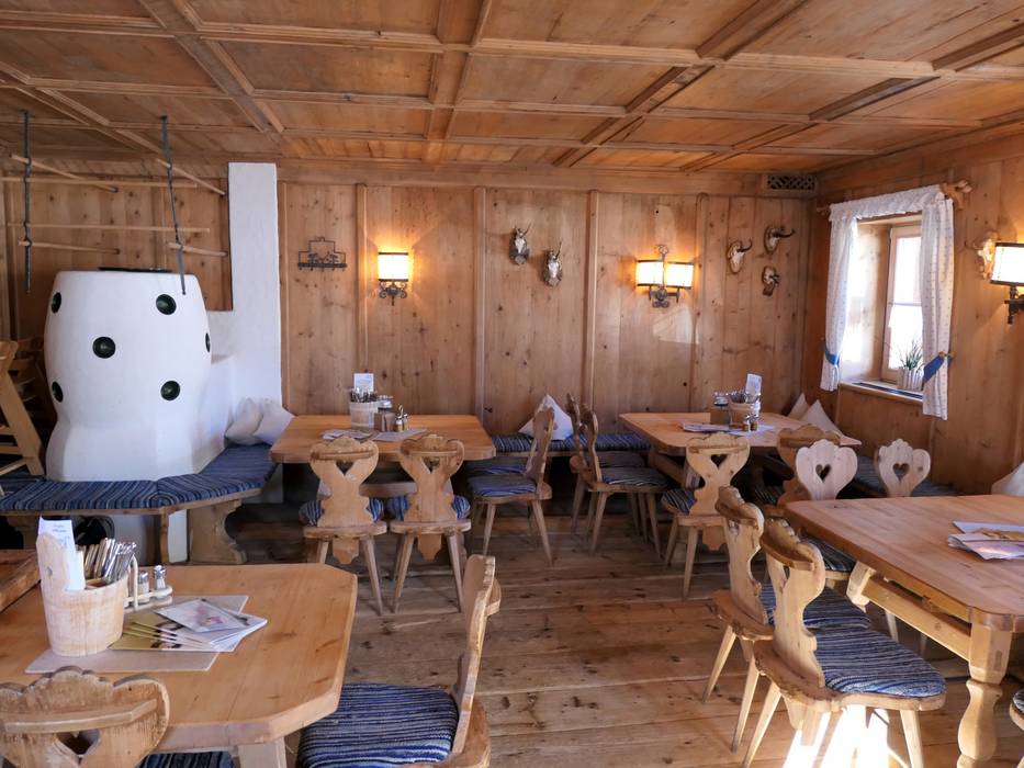 Le refuge de montagne propose des spécialités tyroliennes typiques dans une ambiance chaleureuse de chalet. La vue depuis la terrasse ensoleillée sur l'autre versant du domaine skiable et sur le panorama montagneux est grandiose.