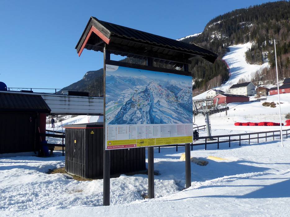 Le plan des pistes représente bien le domaine skiable de Kvitfjell. Tous les remontées mécaniques et les pistes y sont décrits. On y trouve également des informations sur les hôtels et les possibilités de restauration. Malheureusement, les routes d'accès à la station intermédiaire (Mellomstasjon) et à Kvitfjell Vest ne sont pas indiquées.