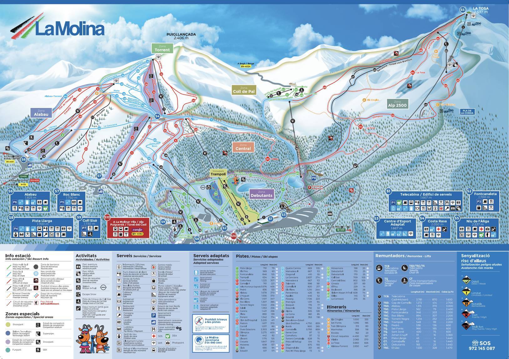 Indications de directions (plans, panneaux informatifs, signalisation) et sécurité sur le domaine skiable La Molina/Masella – Alp2500