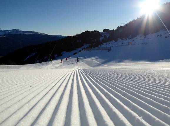 Même lors des hivers avec peu de neige, les pistes de descente sont parfaitement préparées avec de la neige artificielle. Les zones très fréquentées sont toujours soigneusement entretenues avec beaucoup d’attention aux détails. En particulier, les pistes pour débutants sont dans un état excellent.
