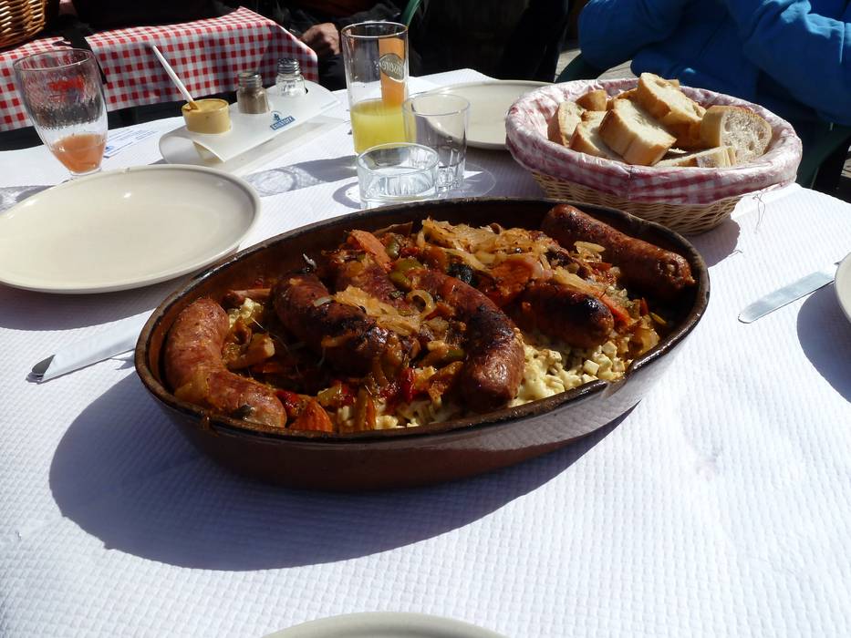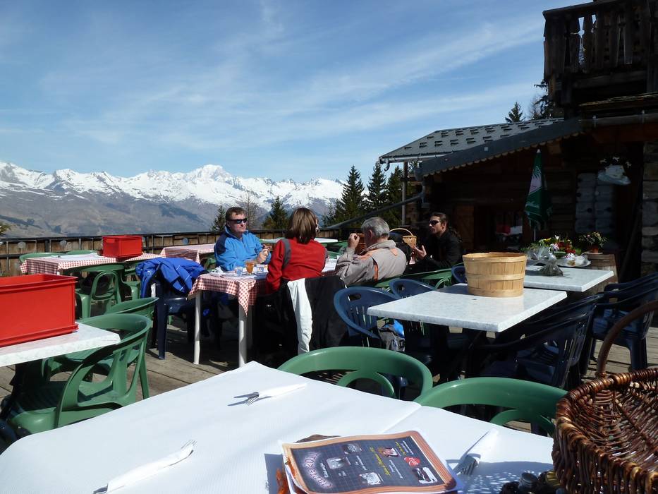 Grande terrasse orientée au sud. Carte variée avec plat du jour, plats de pâtes, salades, plats de viande et menus pour skieurs.