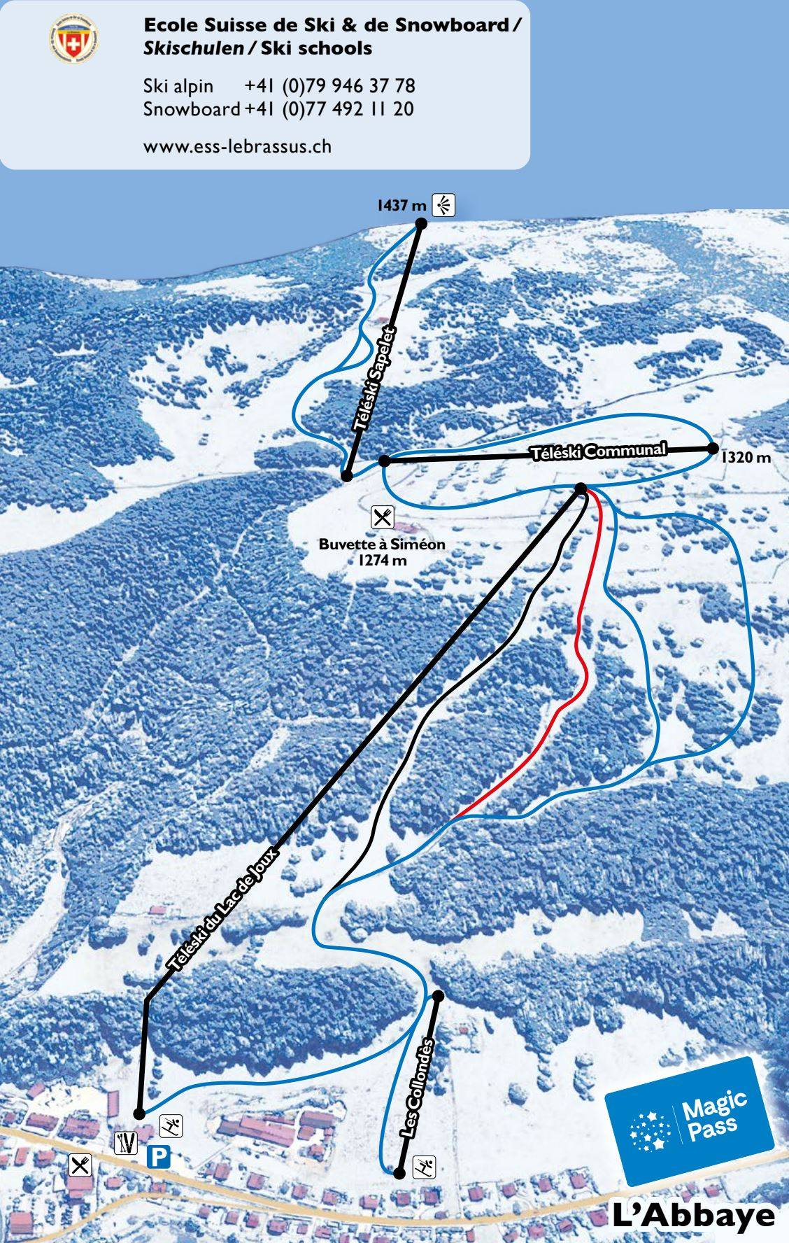 Plan des pistes L'Abbaye (Vallée de Joux) Saison 2024/2025